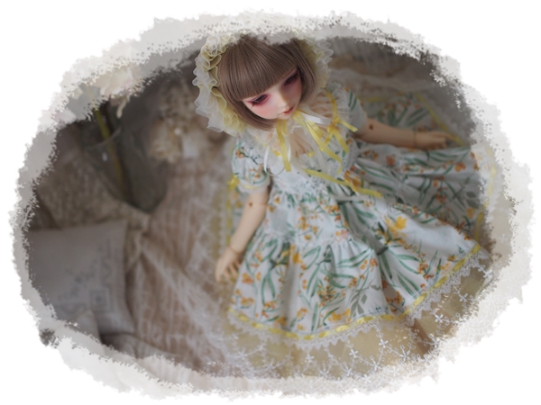 黄色は普段あまり使わない色なのですが、黄色のチュールを白いレースと重ねると愛らしい雰囲気が出て、春らしいお洋服に仕上がったかなと思っています。